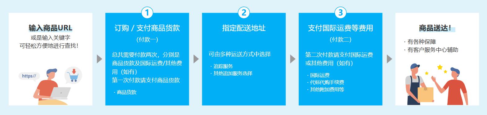了解两段式付款流程—付款一(商品付款)与付款二(运费手续费等等其余费用付款),以及商品会先送到仓库这件事后,整体流程其实就很简单。