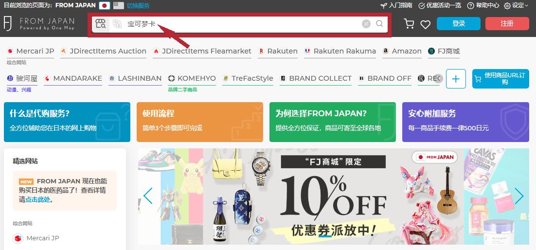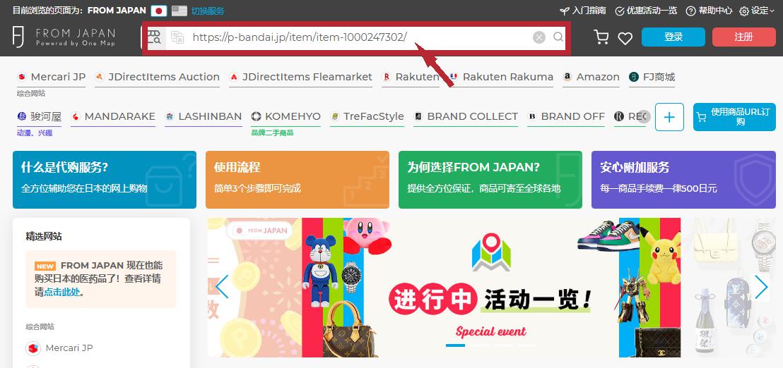 你可以直接在 FROM JAPAN 网站上利用关键字搜寻商品,或输入商品网址