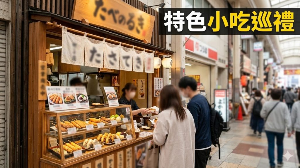 - 食べ歩き(邊走邊吃)文化盛行,唐揚げ、鯛魚燒、烤糰子應有盡有